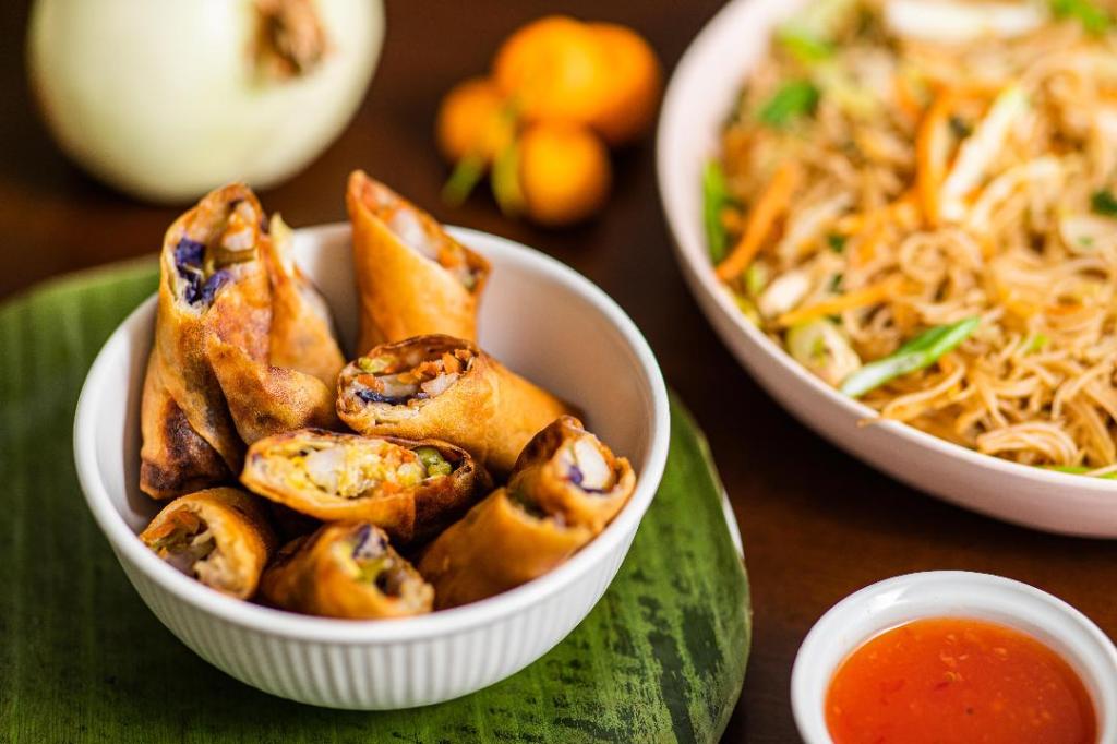 One of Lola’s Kusina’s best-selling dishes is Lola’s savory vegetable lumpia (Filipino eggroll), fried to a golden crisp served w/ a sweet chili dipping sauce, or sawsawan of vinegar, crushed garlic, and pepper.